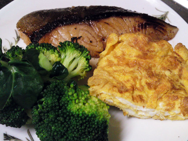 今日の朝ごはんは、銀鱈粕漬け、甘めの卵焼き、ゆでたブロッコリー(えごま油と塩)、豆腐とネギのおみおつけ、白いご飯。食後にあったかいほうじ茶を飲んで〆。