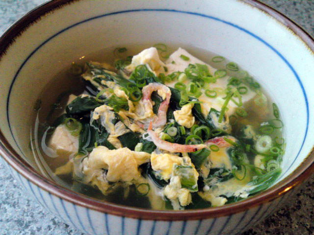今日の夜ご飯(朝方ご飯)は豆腐とわかめのスープ、塩味であっさりです(^ω^)