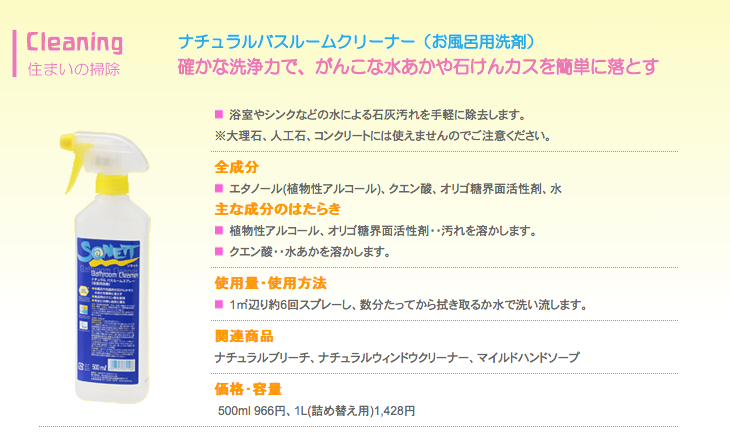 SONETTのナチュラルバスルームクリーナー。
