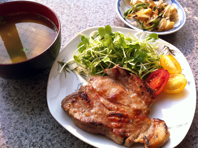 でも、飯だけは毎日飽きもせず食べてます。前に大量にお肉を頂いた時の豚肩ロースがわんさかあるもので、近頃はポークソテー三昧。