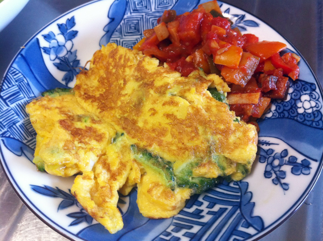 新たまねぎとトマトのサラダ、ほたて貝柱と玉ねぎの醤油バター卵とじ、味噌汁、ご飯と一緒に。最近暑いので、家では魚ばっか食ってる気がする;そして久々の食事録!