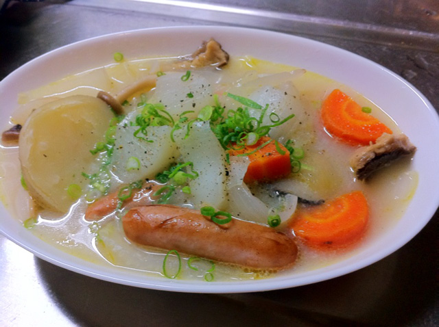 今日はちょっと目先を変えて、豆乳入の和製ポトフにしてみました。どんこ(干し椎茸)が入ってますよん。スープは美味しいし節約にもなるし良いんだけど、さすがに食べ過ぎると飽きますからねえ(でも、ダイエットには良いです!スープ生活オススメ!)