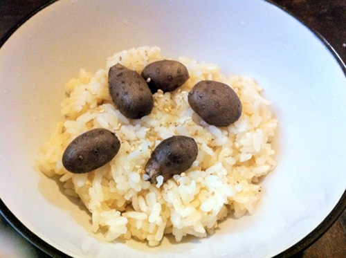 むかご御飯、遠くでほんのりと土の味が!こういうのを滋味というのかも。旬の味です。にゅうめんは、お友達が送ってくれた