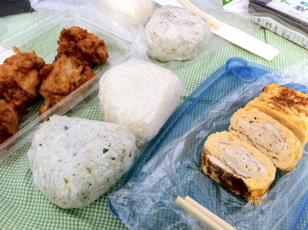 で、今日はちょっと用事済ましがてら、ミニピクニックに行ってきました。とはいえ場所は西武の屋上ですけどね(笑)用事が済んだらデパートの屋上でお昼食べるのも良かろうと、昨夜思いついて玉子焼きを焼いておいたのです。朝起床と同時にお米のスイッチをオンして、梅と青菜のおむすびも持ってGO〜♪
