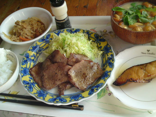 牛タン(キャベツ)、銀鱈粕漬け、切干大根の煮物、