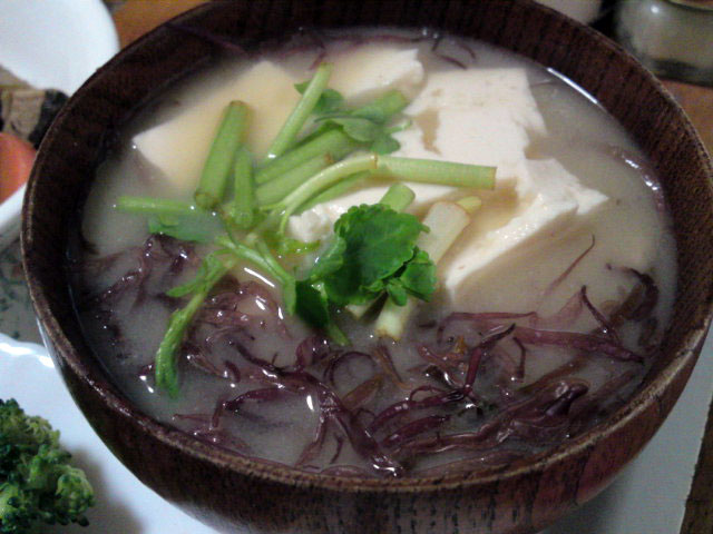 ふのりと豆腐のおみおつけ、たらこ、白いご飯