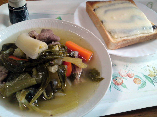 牛すじと野菜のスープ、アンチョビチーズトースト