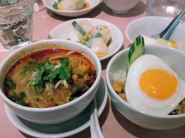 昨日のお昼ごはん。TINUNで、ミニトムヤムクンラーメン(センレック)とミニガパオ丼のセット。夏はエスニック料理ばっかり食べたくなって困る!最近は、ヤムウンセンにハマッてます。