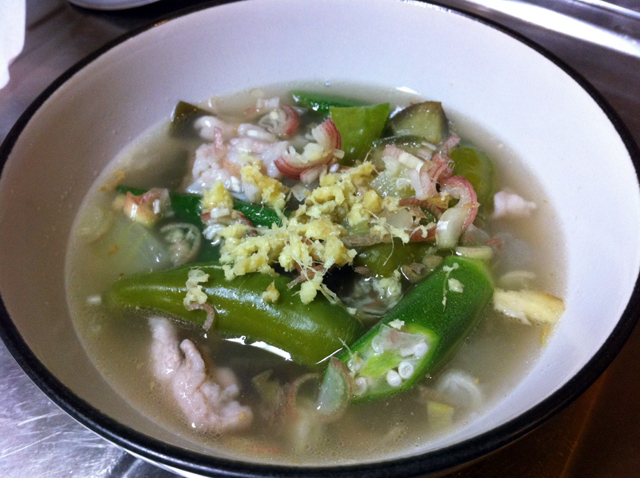 (夜)夏野菜の塩豚汁。こちらのメニューはツジメシさんを参考に作らせていただきました→「